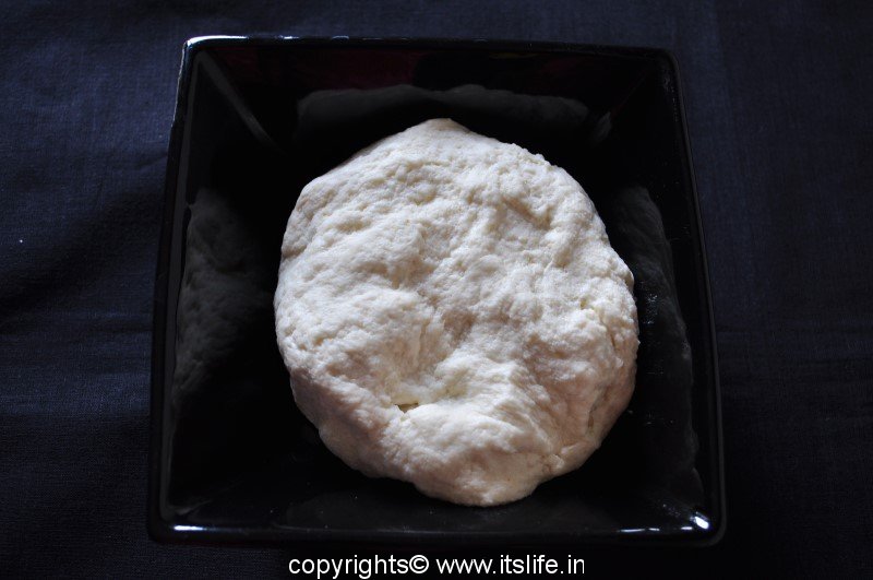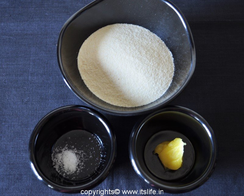 Mix Rawa, Ghee, Salt and little water to form a dough. Keep it aside for 2 hours.