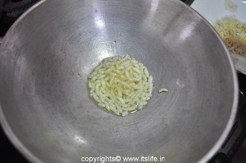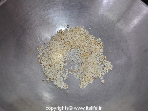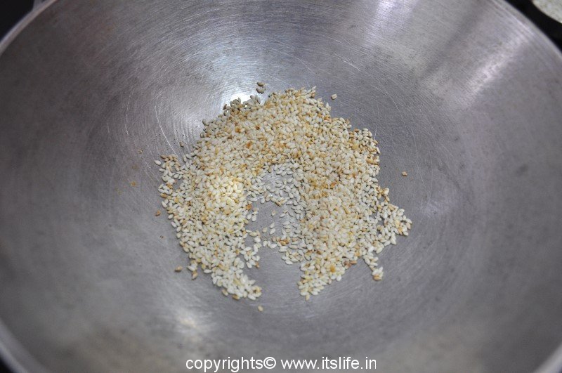 Remove on a kitchen towel. In a mixing bowl mix Sugar Powder, Dry Coconut, Avalakki, Cardamom Powder, and Sesame Seeds.
