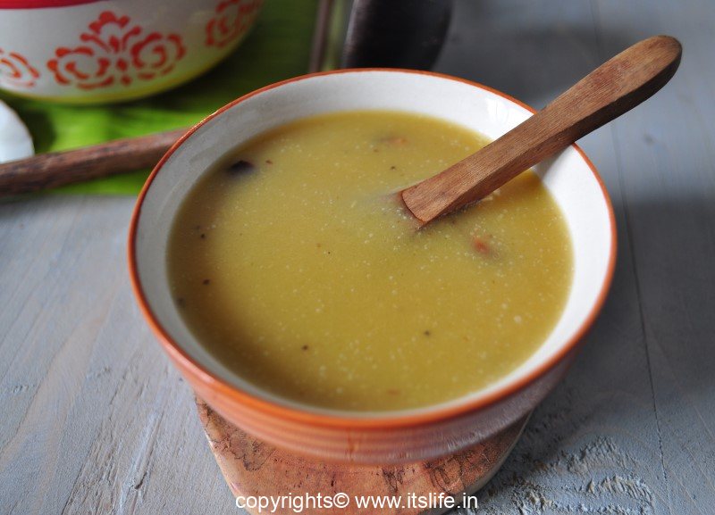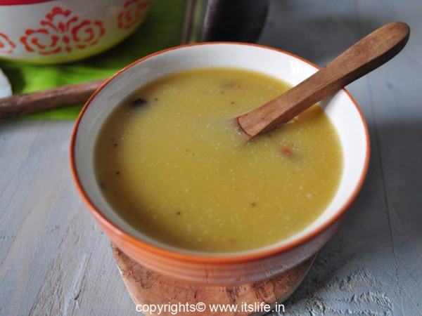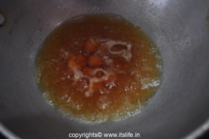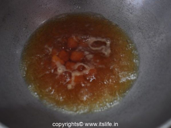 In another vessel, mix a cup of water to Jaggery and let the Jaggery melt.