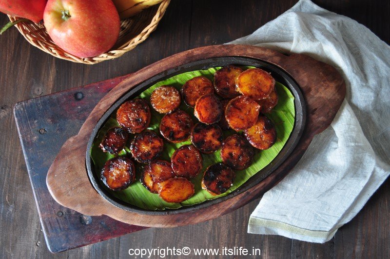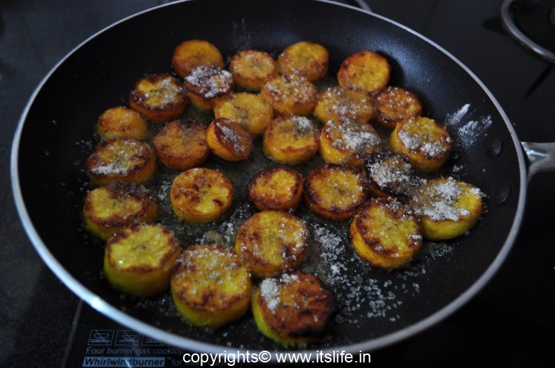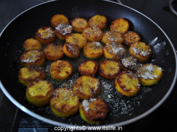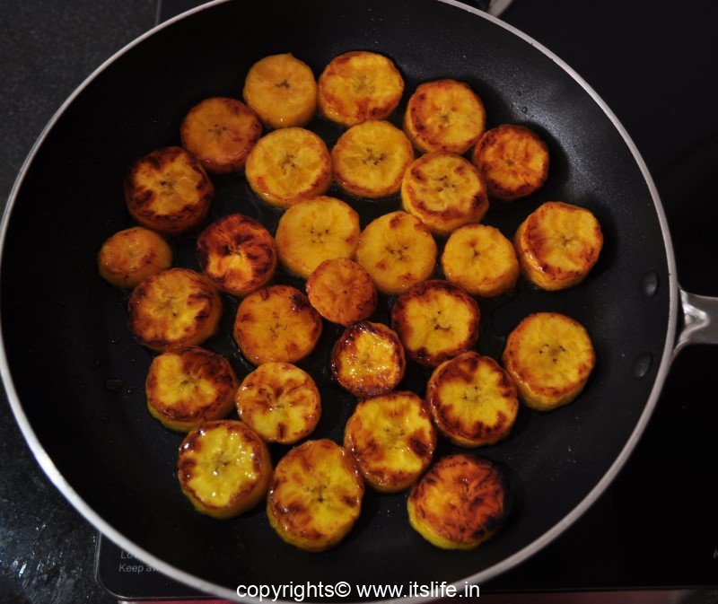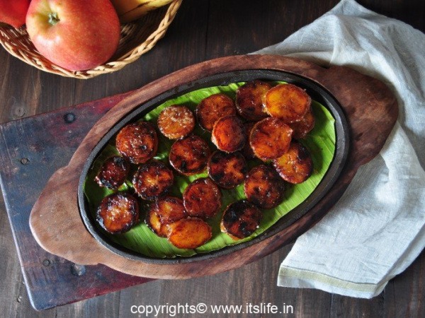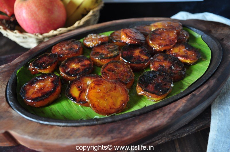 This dish is very simple to make. It is prepared using Kerala Banana, Clarified Butter and Sugar.