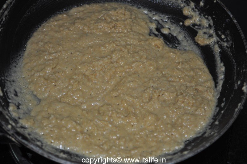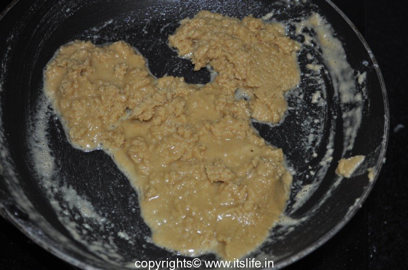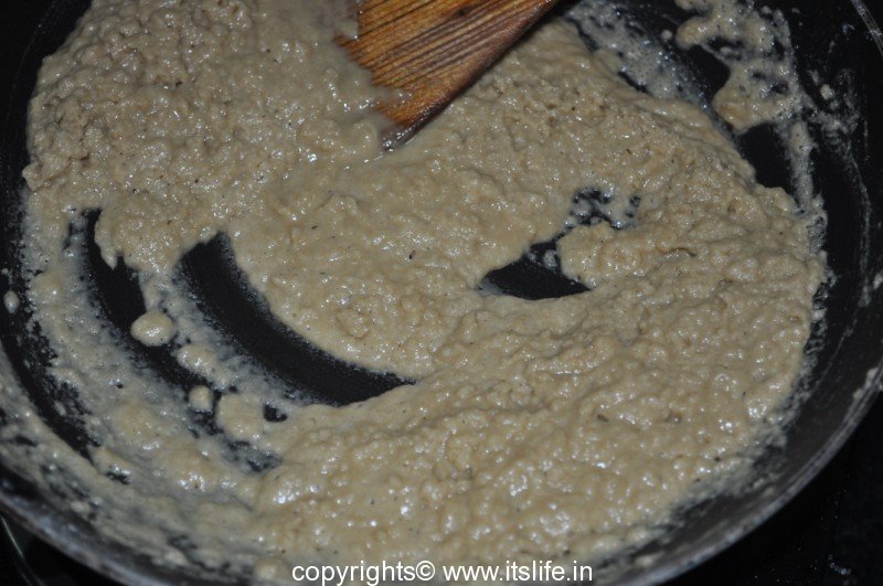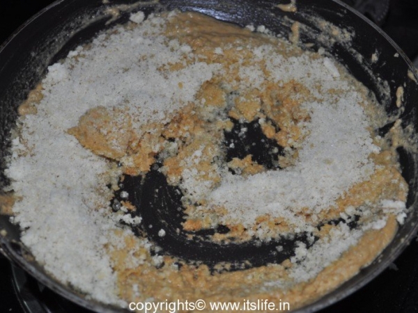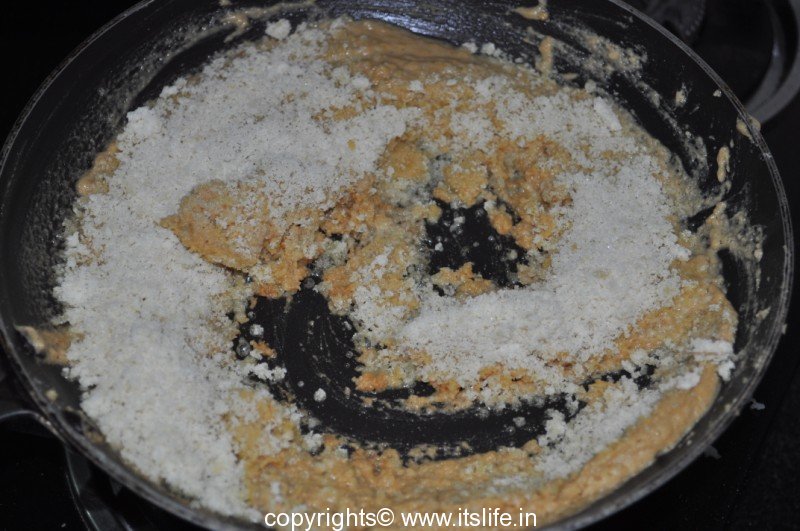 Remove from fire and add Jaggery and mix well.