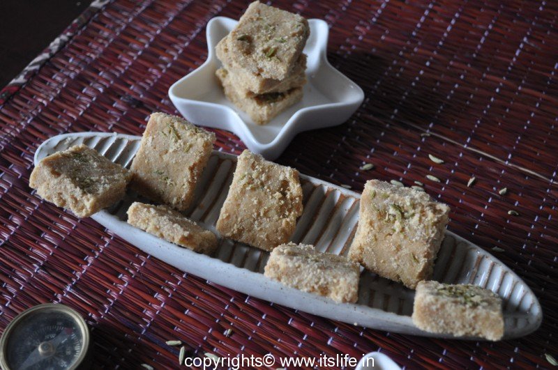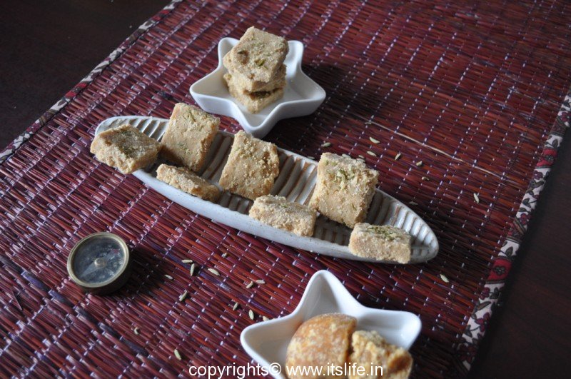 Gud Papdi is a sweet dish prepared using Wheat Flour and Jaggery.