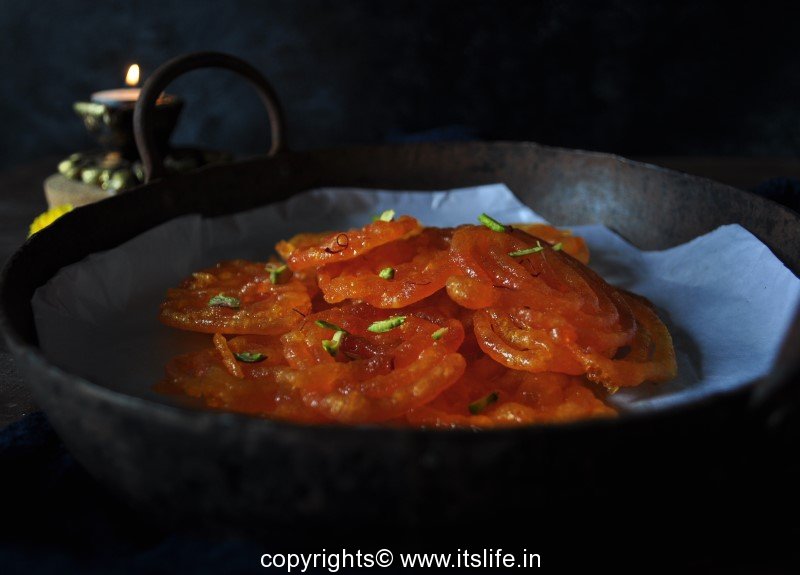 Serve Jalebi hot or cold. Jalebi is also served with Rabdi (condensed sweet milk).