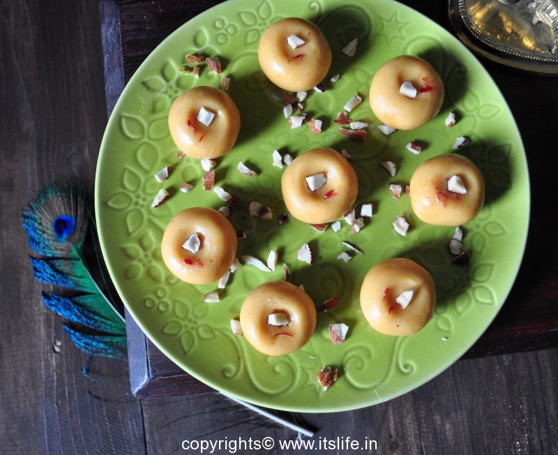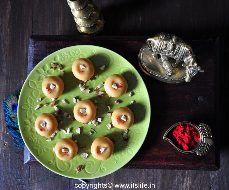 The best Kesar Pedha in Mysore was available at Indra Sweets. My dad used to get it home for all occasions. Making this Pedha (sweet) is very easy. This can be a wonderful treat to Lord Krishna as he is preparing to visit your homes on Krishna Janmashtami (11th Aug 2020), you can also prepare to welcome him by making Kesar Pedha.