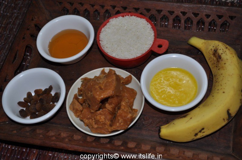 Mudde Payasa is prepared using cooked Rice and Ripe Banana.