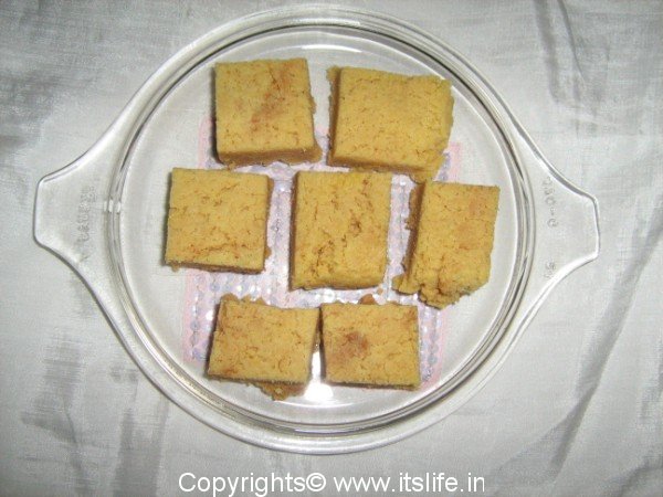 Pour this mixture on a greased tray. Cut into desired shapes.