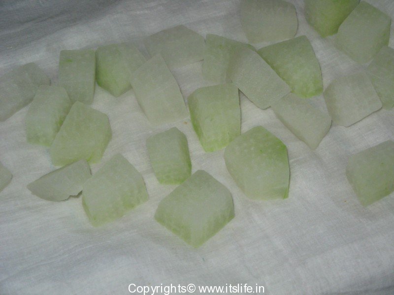 Picture above – Petha cubes boiled in water and spread on a cloth