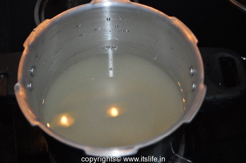 Cook in the cooker for one whistle.
