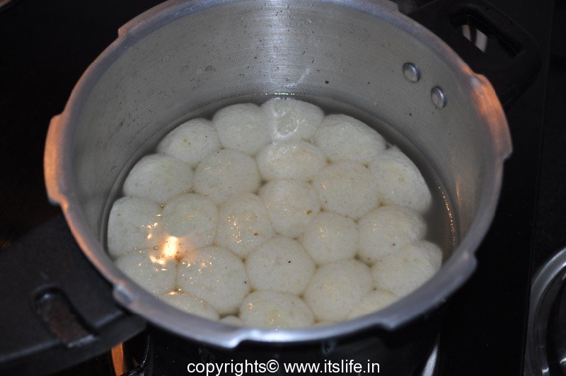 Now, add the Chenna balls in the Sugar syrup.