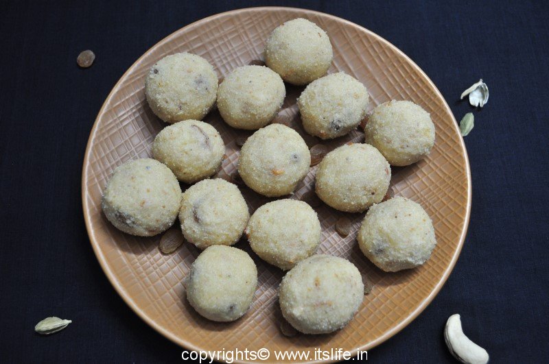 Rawa Laddoo are sweet balls prepared using Semolina. This would always be made and stored in a big box at home. Whenever children are hungry we would be given this along with Avalakki / Poha.