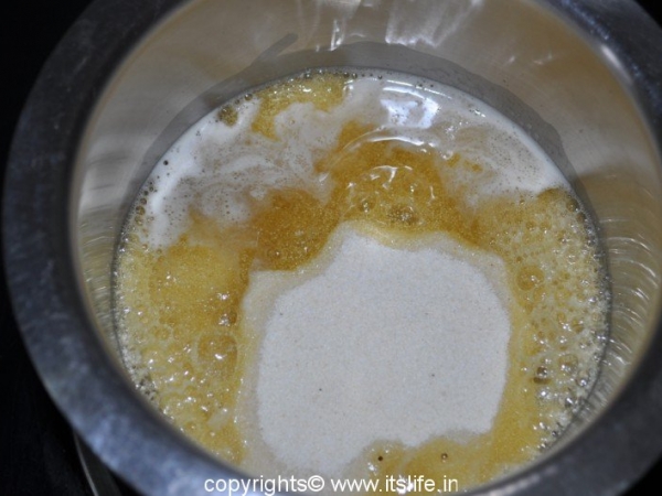 Add Jaggery in a utensil along with a cup of water and let the Jaggery melt.