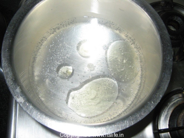 For the outer covering, bring the water to a boil and add Ghee and Salt.