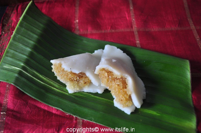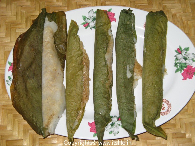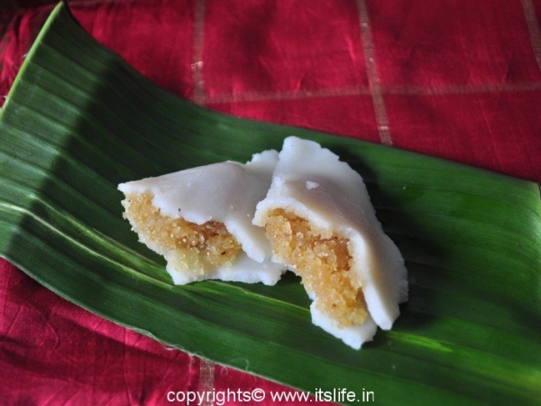 A sweet coconut filled in Rice flour wantons, which are steamed. This is also known as Kuchichida Kadabu (Steamed Kadabu) in Kannada. This is prepared on Ganesh Chathurthi and Bheemana Amavasya festival in Karnataka. Another spicy variety is also prepared.