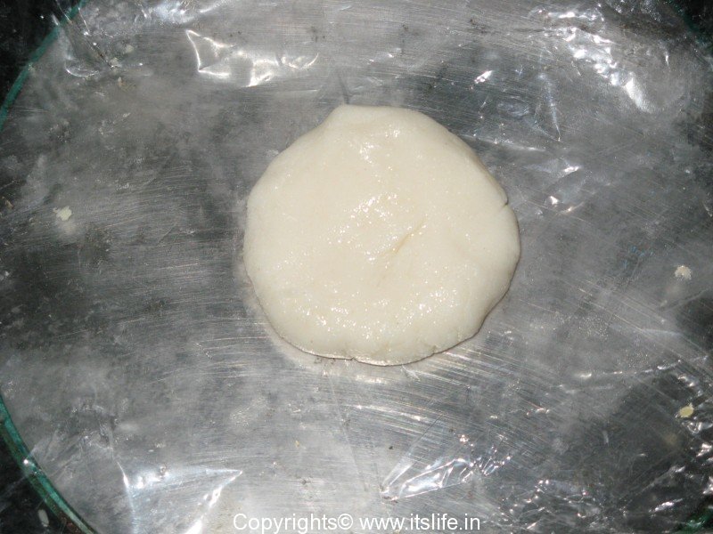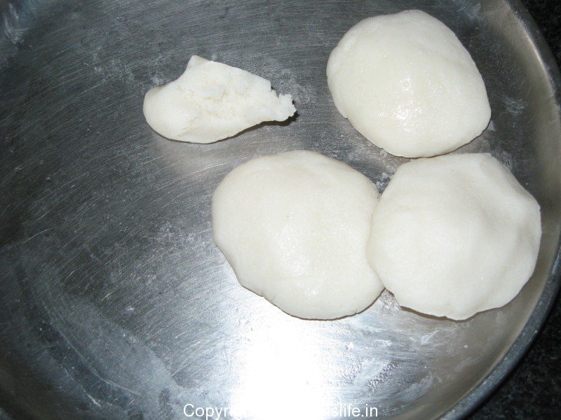 Remove and keep it aside. Let it cool. When cool, knead it well into a dough. The dough should be smooth. Divide it into lemon sized balls.