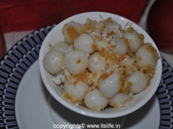 Sweet Kolkotte is a dish where steamed rice balls are mixed with Coconut and Jaggery mixture. This is prepared as an offering to Lord Ganesha during Ganesha Chaturthi festival.