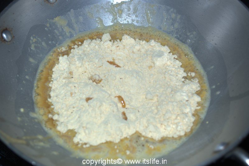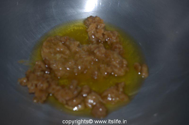 In a thick-bottomed pan mix jaggery and ghee.