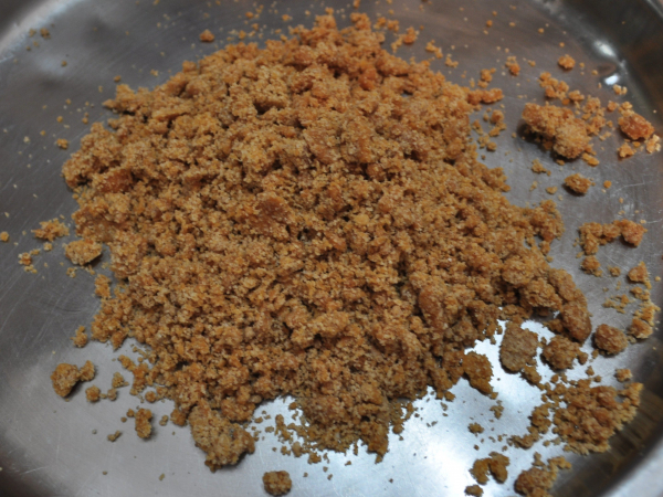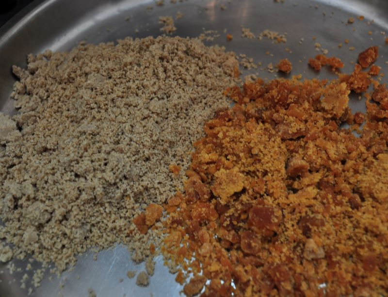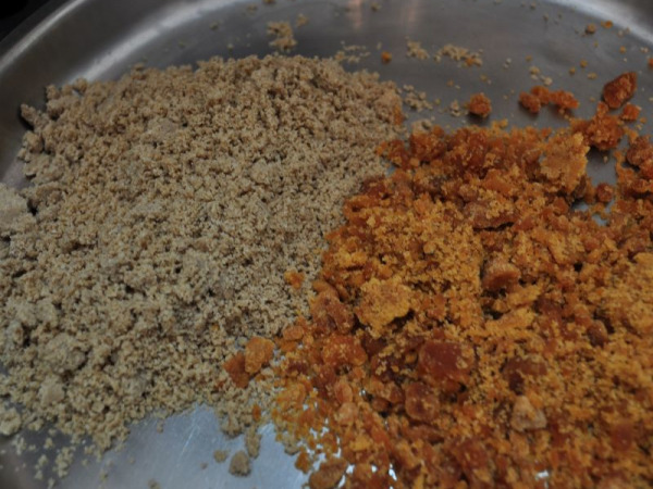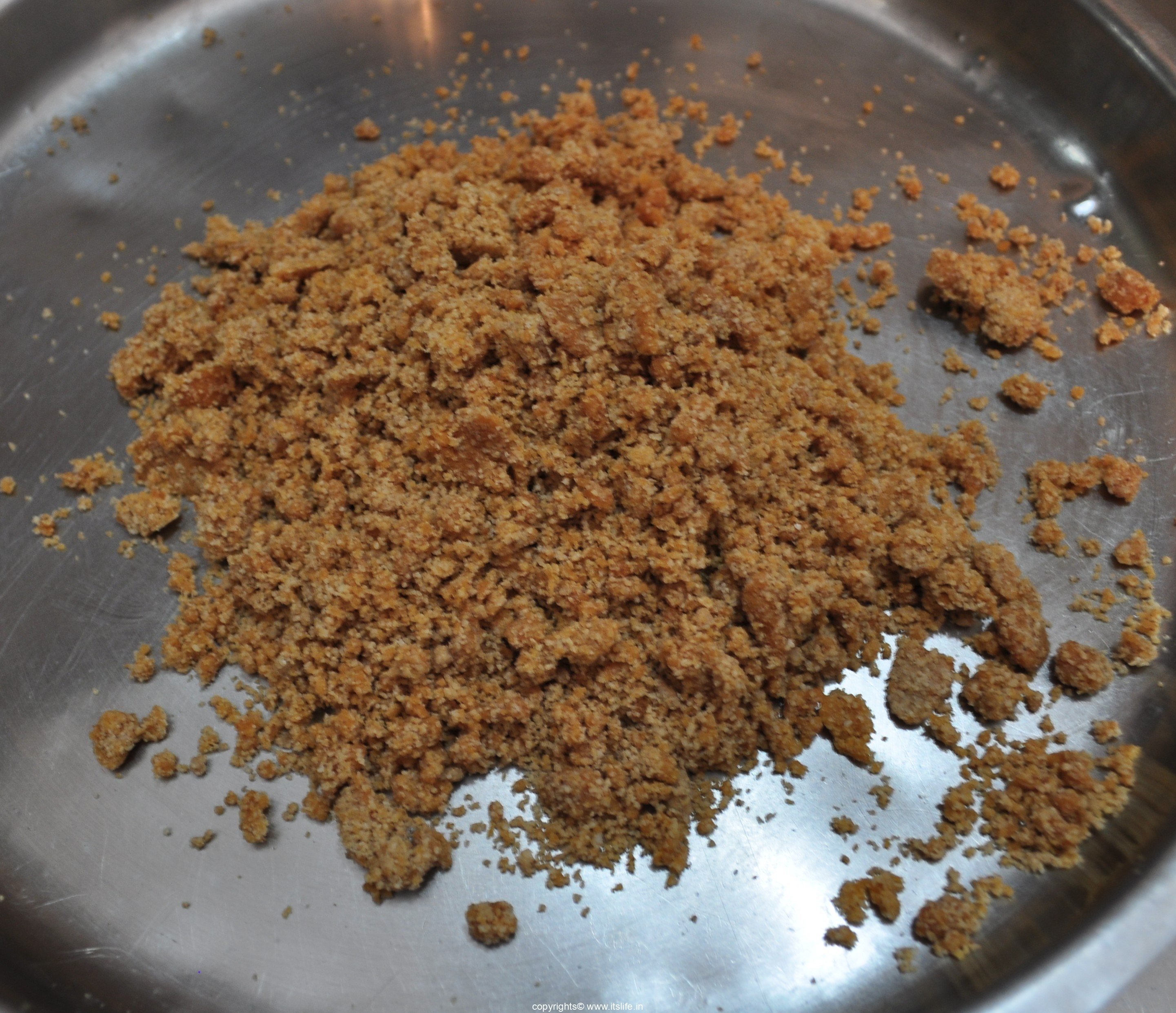 Grind the Sesame seeds to a powder and grate the Jaggery.