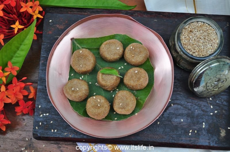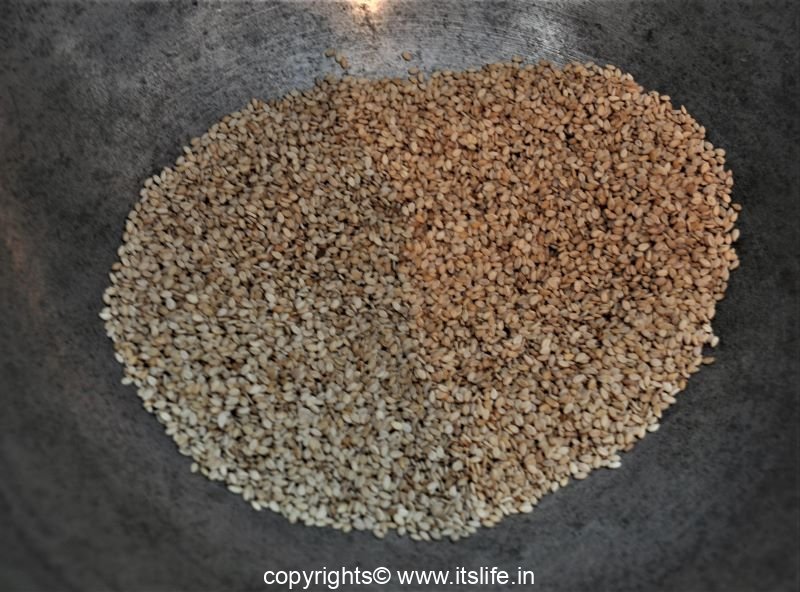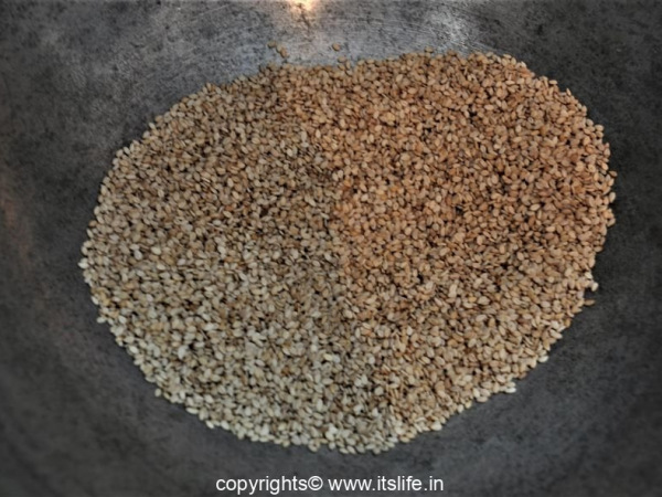 Yellina Chigali is prepared using raw Black Sesame seeds on Nagara Chauthi festival. The Sesame seeds are roasted before grinding to a powder during Nagara Panchami.