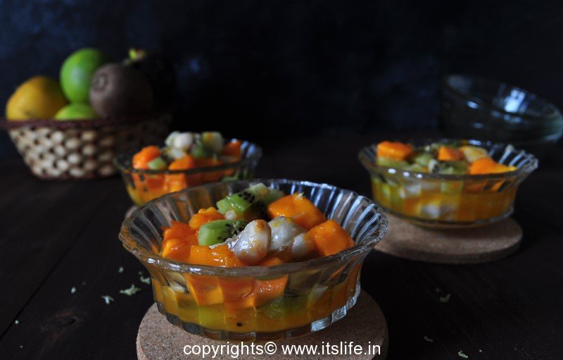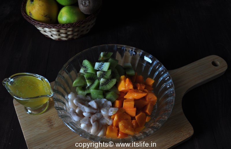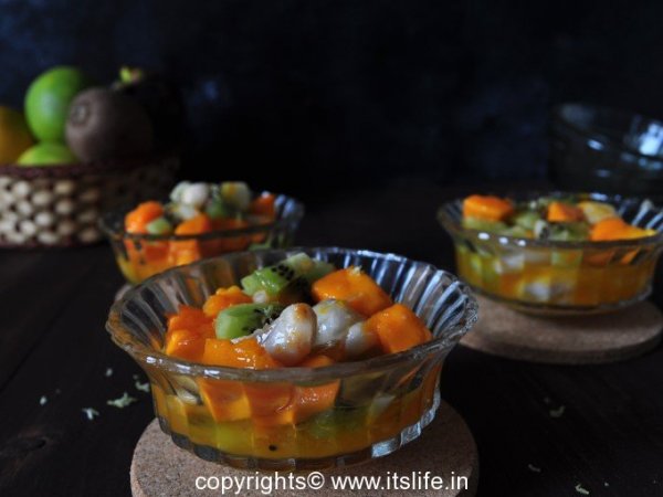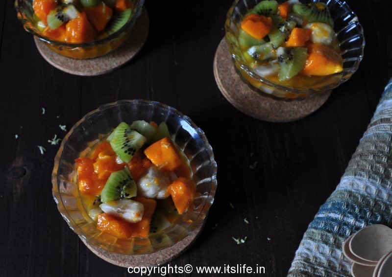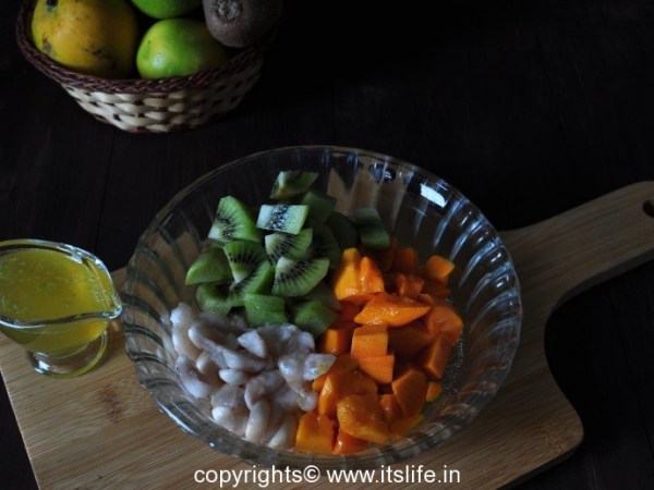 Any seasonal fruits can go into this fruit salad. The juice of Orange combines the fruits well and reminds you of Summer days!