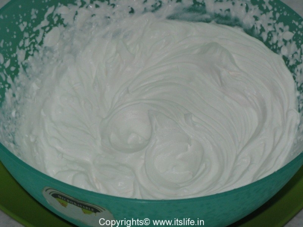 In another bowl whip Cream and Sugar till it is thick and firm.