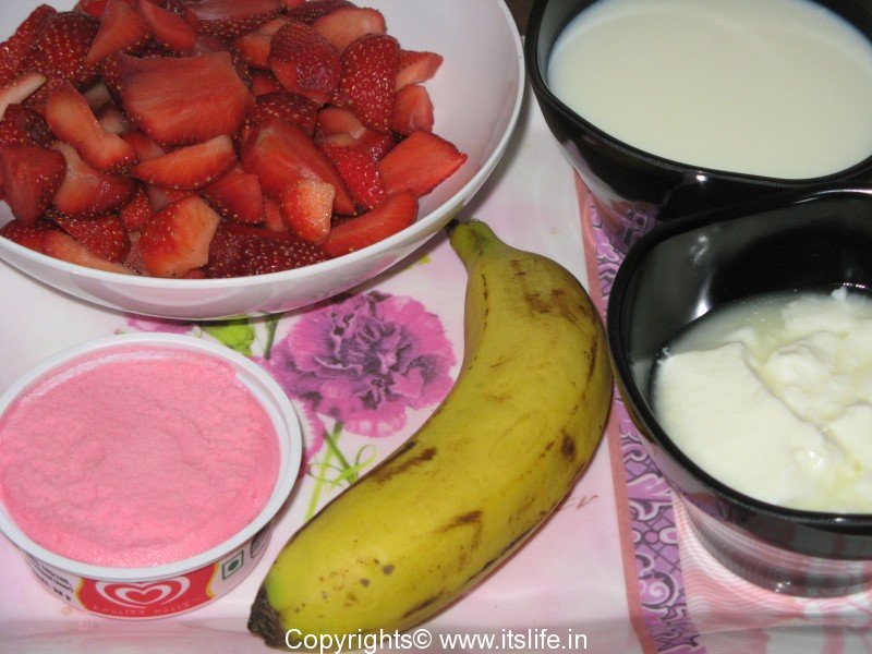 Clean Strawberries and chop them. Combine the ingredients and blend.