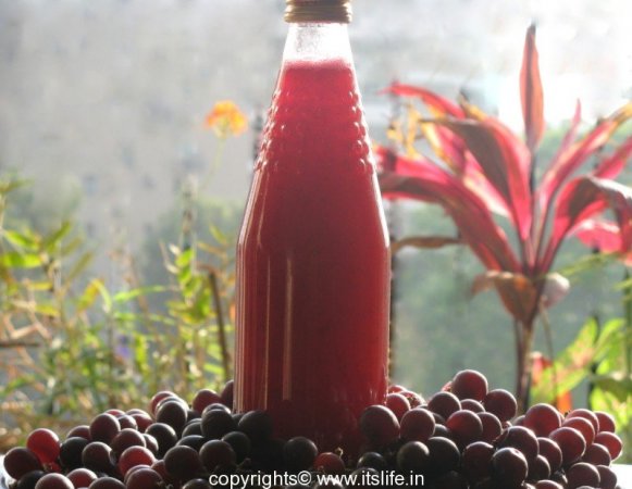 This Grape concentrate can be prepared and stored for many days. I picked up a basket of juicy black grapes on the way to Ghati Subramanya near Bangalore and mom was only too happy to make this lip smacking thirst quenching Juice! perfect for a summer evening…