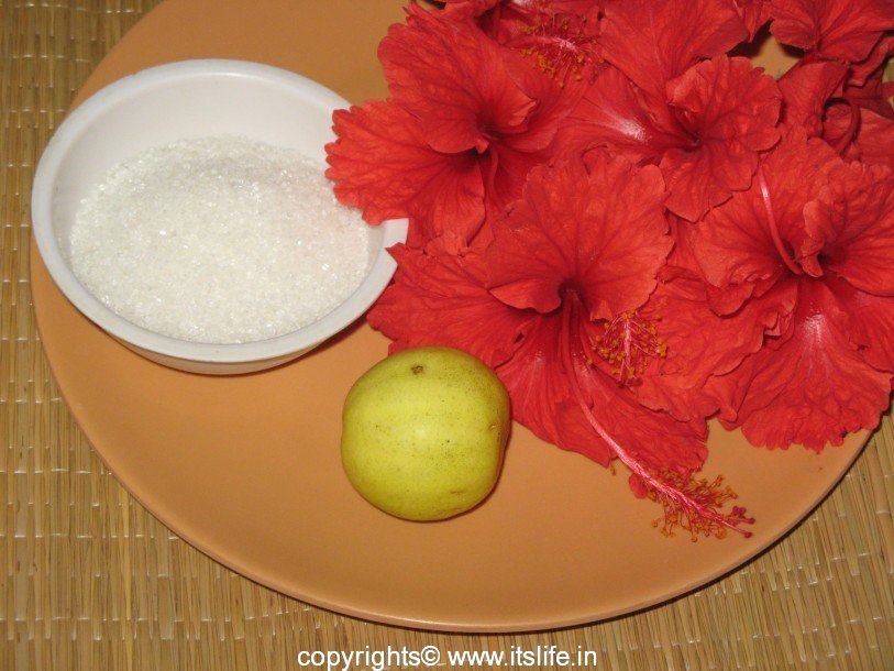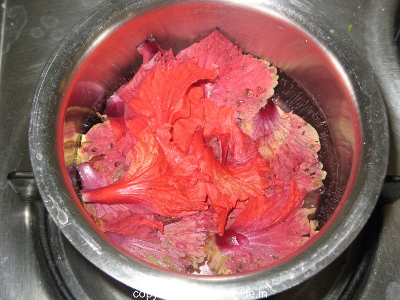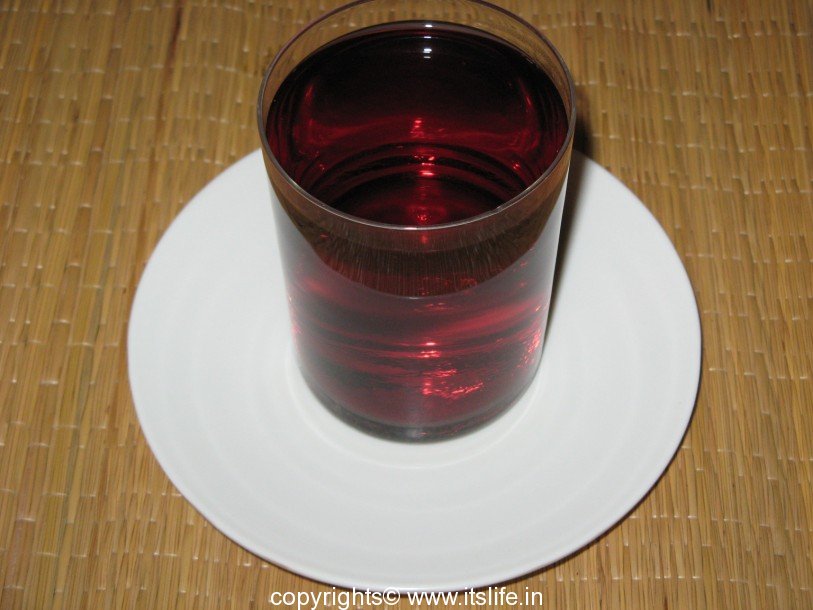 Hibiscus Juice is as the name implies is prepared from the petals of Hibiscus Flower. Juice is distributed during Rama Navami festival and a Flower juice instead of a Fruit juice is a welcome change!