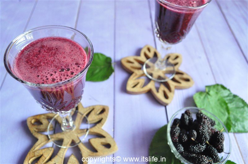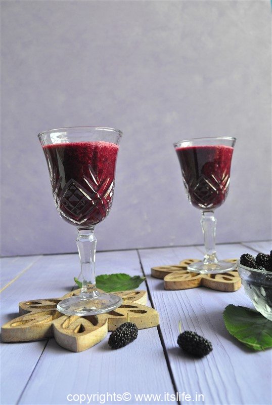 Though Mulberry is grown extensively in Mysuru – Bengaluru region (the silk belt), we never see Mulberry fruits in the market. I was delighted to get some this year and here is this unique Mulberry juice to serve during Rama Navami.