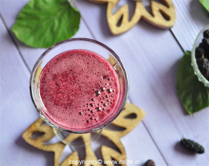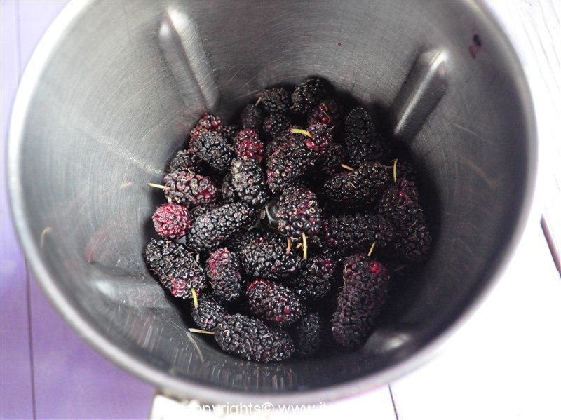 Blend the Mulberries and add 2 glasses of water and sieve.