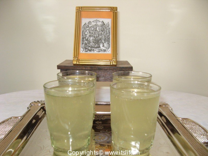 Lemon Juice prepared with Jaggery and served during Rama Navami festival.  This is very good to quench your thirst during summer and while trekking.