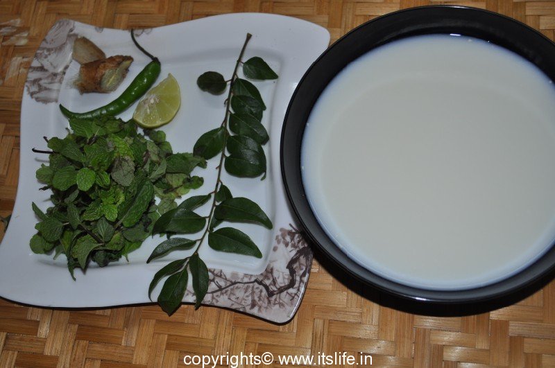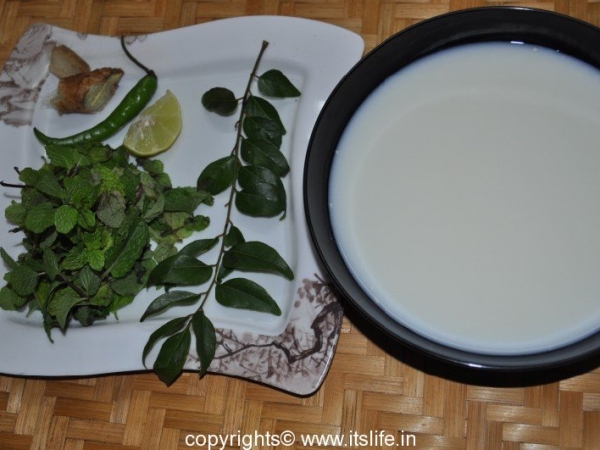 Pudina Majjige – Pudina Lassi is buttermilk flavored with Mint leaves.