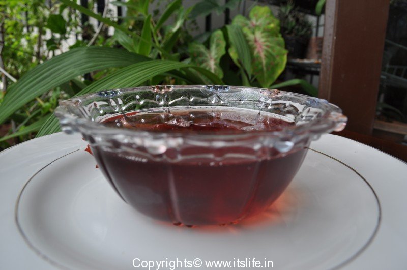 A syrup prepared using Rose petals. This syrup can be used as a spread, or make into a drink with water or milk.