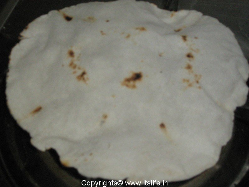Just after 30 seconds flip the Rice Rotti/bread and roast for a minute. Remove the Rotti and put it on the flame directly and remove.