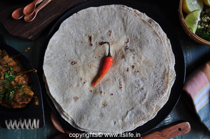 In our house, my wife prepared Jowar Roti. But it is not as soft as one served in Kamath’s Minerva Circle, Bangalore. Her preparation is like Davangere’s dry roti.