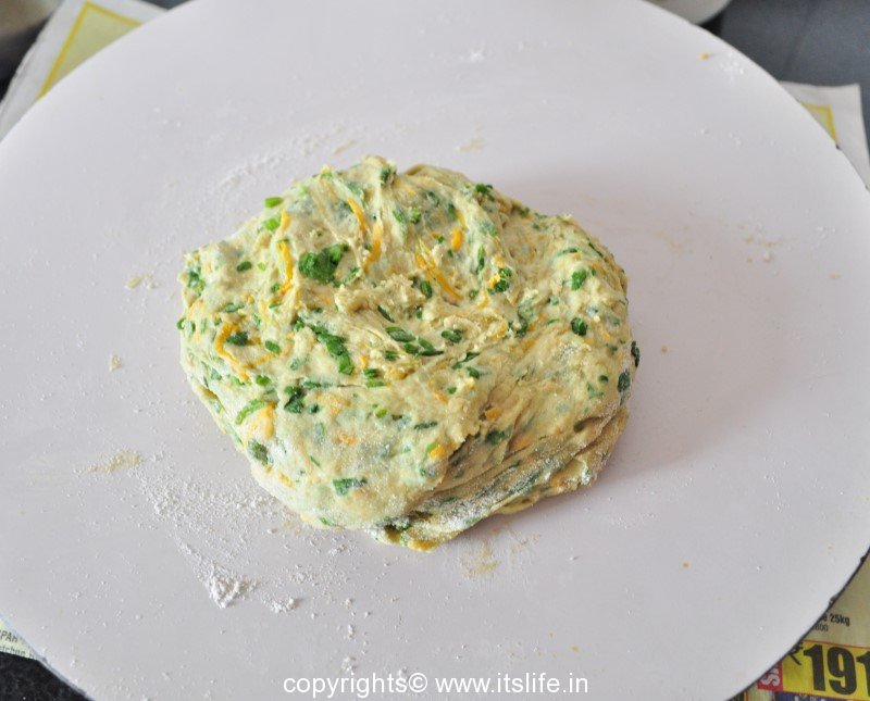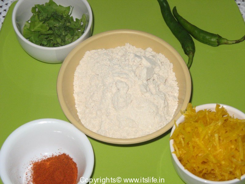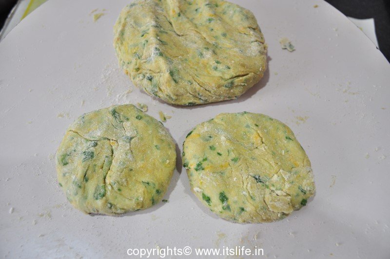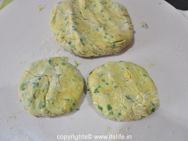 Mix all the ingredients except for Oil. Add water and bind to a dough.