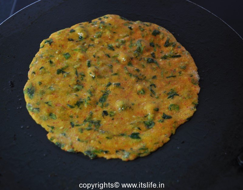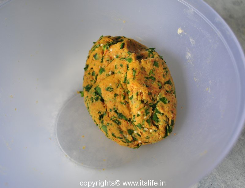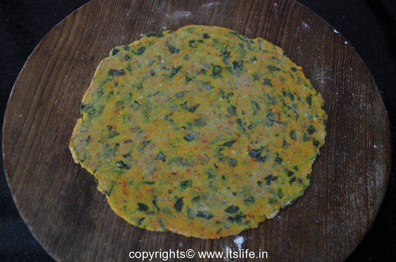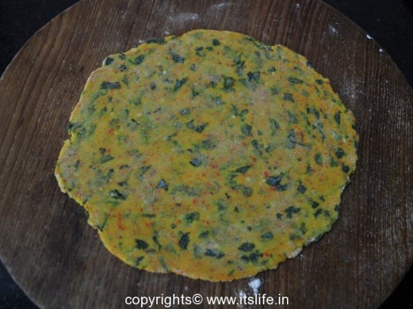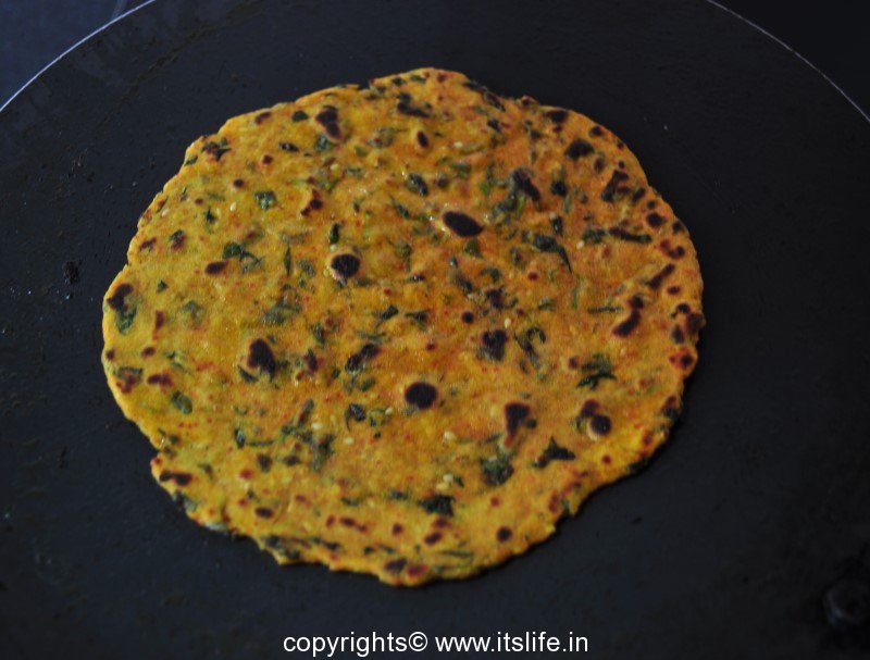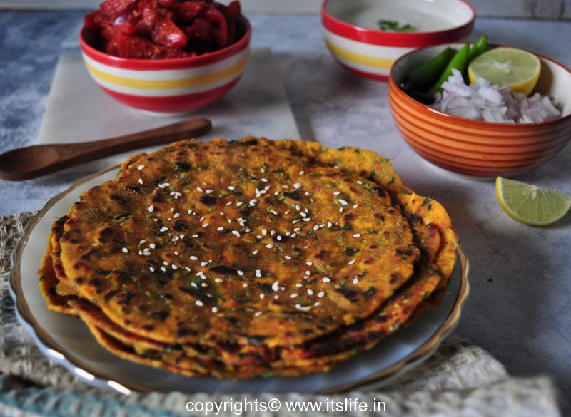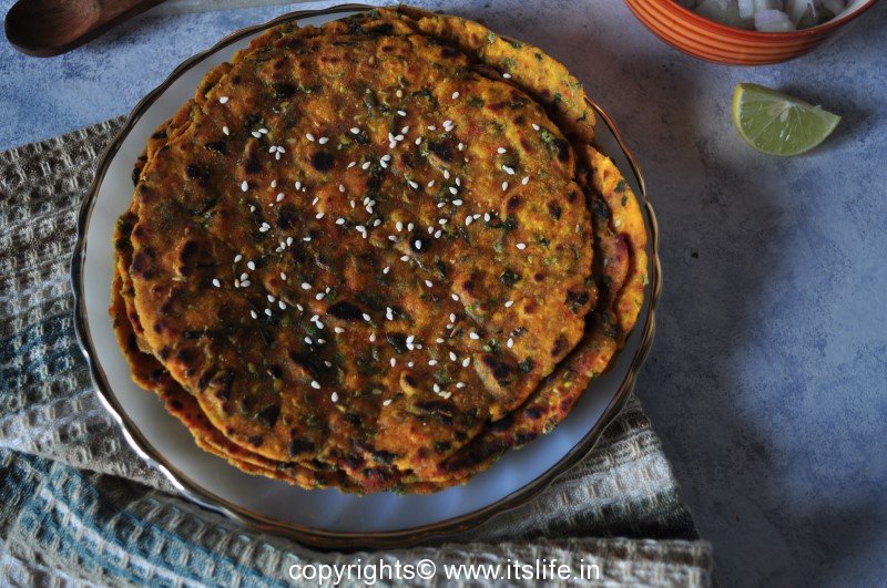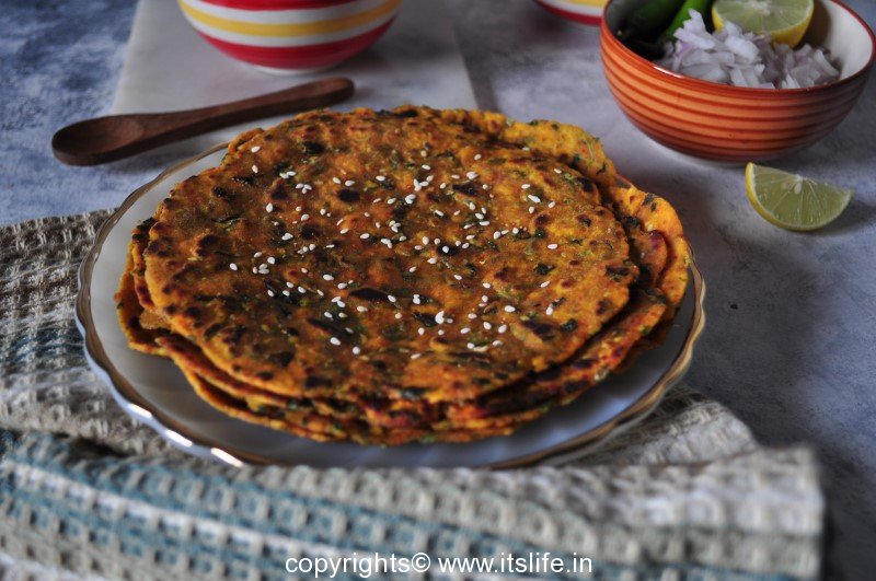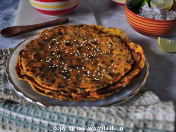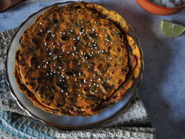 Masala Thepla is a type of bread prepared in Gujarat. This has a long shelf life and is very suitable to carry while travelling.