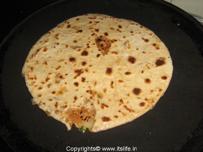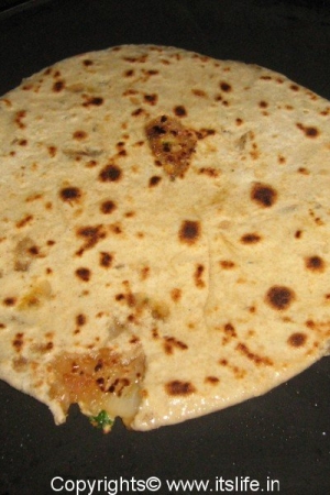 Heat a griddle and roast the paratha/bread on both sides sprinkling Oil.