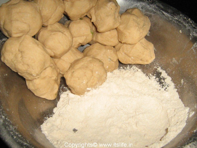 Add water and salt to Wheat flour and knead to a dough. Divide into balls.