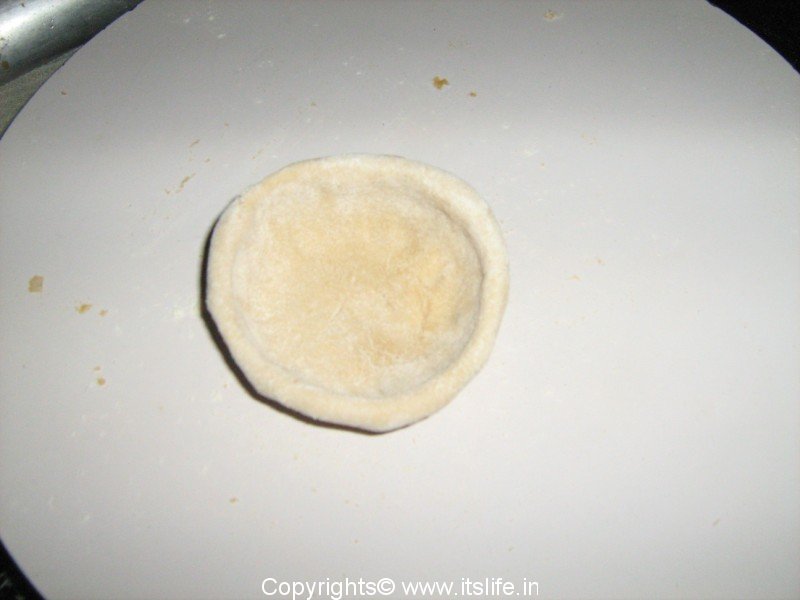 Shape each ball into a cup and fill 2tbsp of Onion mixture into the cup and close it.