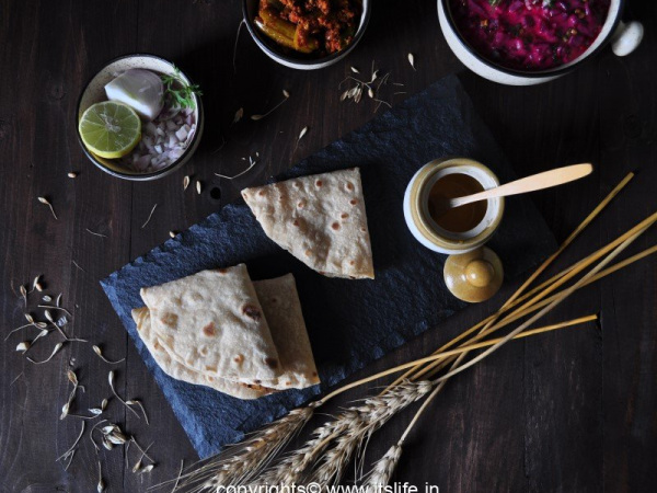 Phulka is plain Indian bread. This is the most common main course at Indian homes. A very filling and healthy food, this is great to pack for office or school.