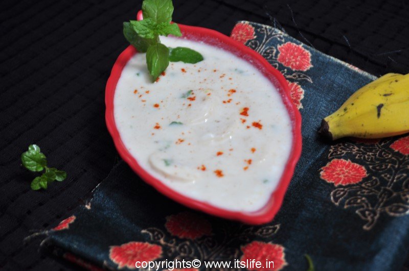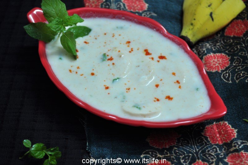 Banana Raitha is a dish prepared using Banana and Yoghurt. It is a no fuss dish, can be made in a jiffy!