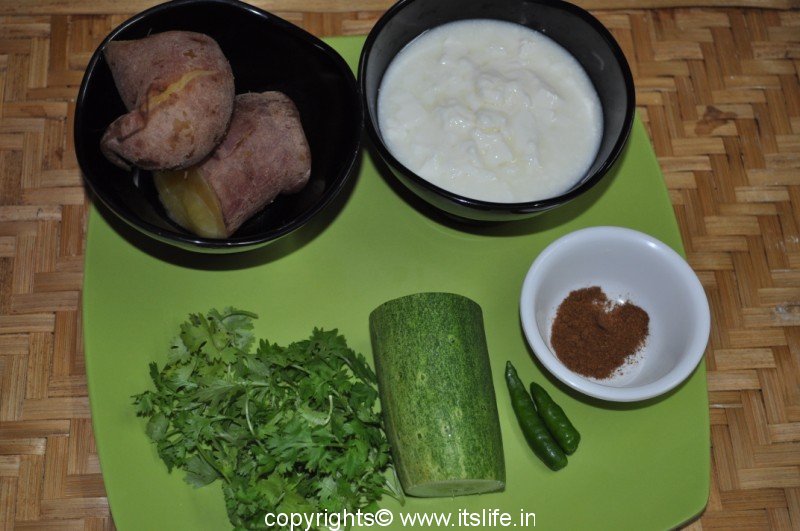 Dasara Raitha is prepared using Sweet Potato and Yoghurt. It is great to keep you cool on humid October days.