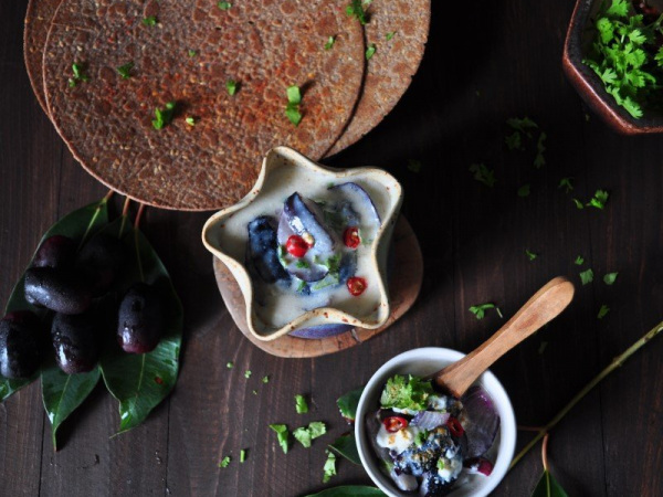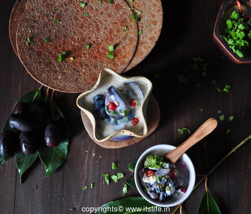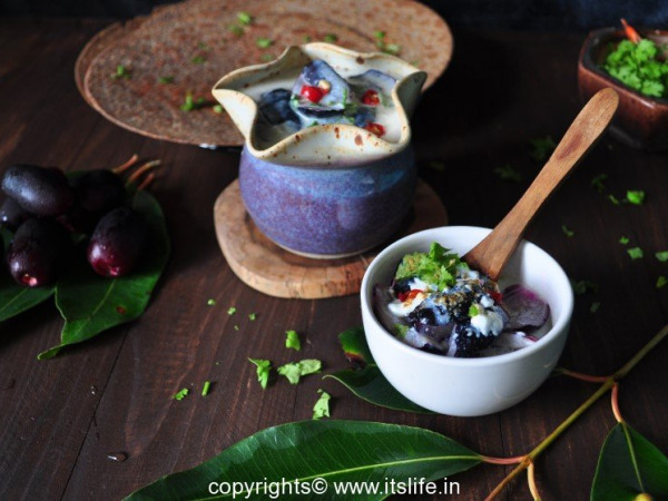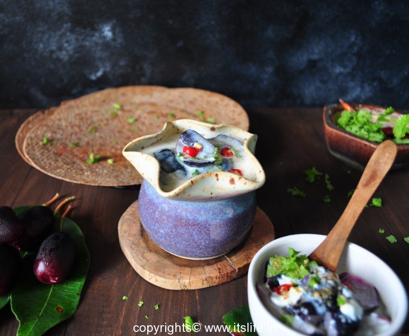 Jamun raitha is another way of consuming the healthy Jamun fruit. Jamun fruit is available during June – July.