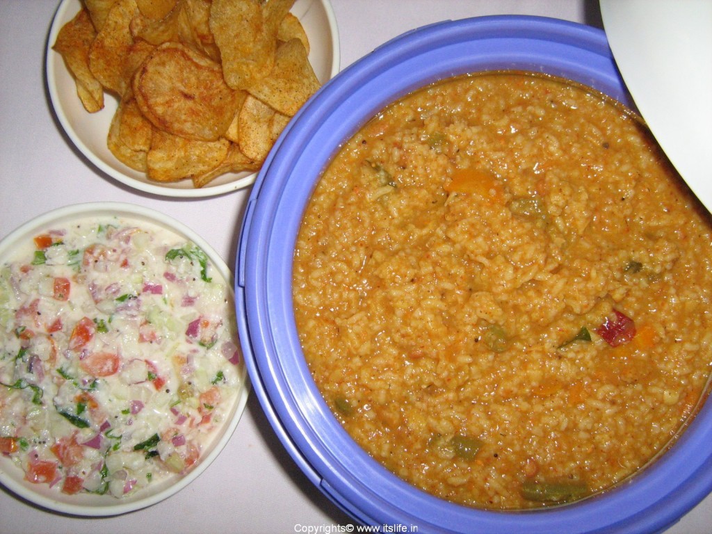 Affectionately this party dish is called B cubed and the authentic name is bisibelehulianna. This is a complete and wholesome meal prepared using lentils, rice, assorted vegetables and spices. Raitha and Sandige/Fryums accompany this main course. Mom makes the best B cubed and she has always honored my friends’ request for the same at parties.