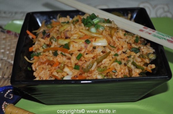 Schezwan Rice is a spicy main course dish prepared using Rice and Vegetables and Schezwan sauce. Schezwan cuisine is from Sichuan province in southwestern China.