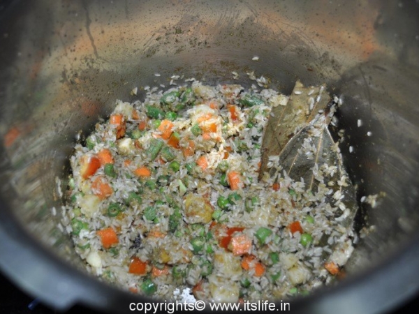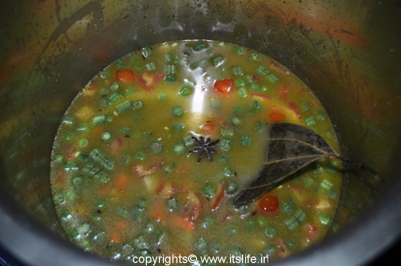 Add Salt and 3 cups of water and close the vessel and cook until done.
