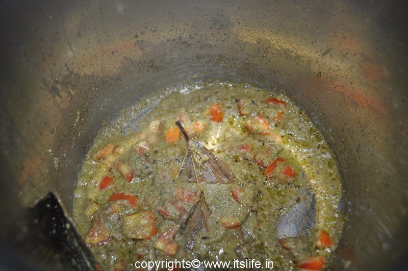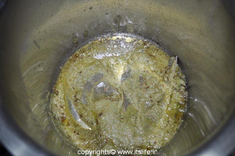 Add Onion and the masala paste and stir-fry until the moisture evaporates.