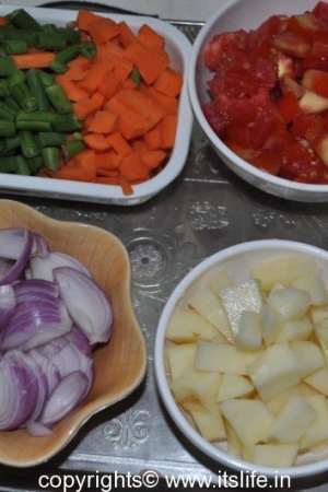 Vegetable Biryani is a complete meal, which is prepared using Rice, Vegetables, and spices. My friend “A” prepared this Biryani when we had a small get-together. It was an instant hit with all of us asking her to part with the recipe.