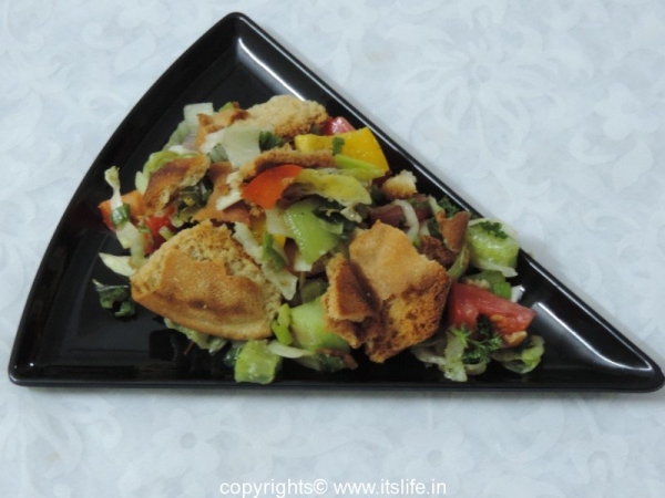 Fattoush is a salad using Pita bread and vegetables.