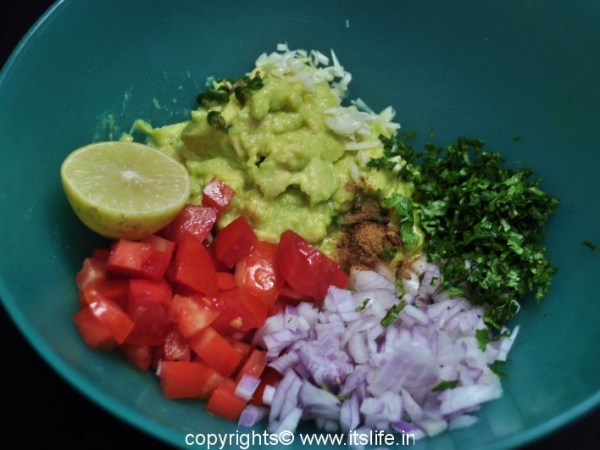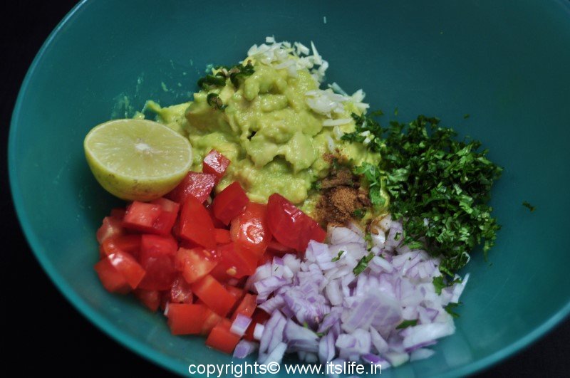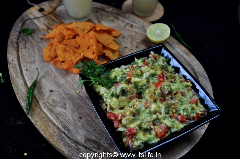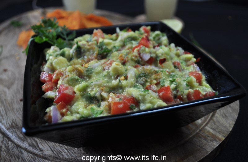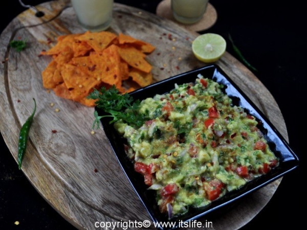 Guacamole is a Mexican dip/salad prepared using Avocado / Butter Fruit. It is a very healthy and nutritious salad and can be eaten as is or used as a spread on bread or as a dip with Nachos, Potato chips, or any crisp breads.